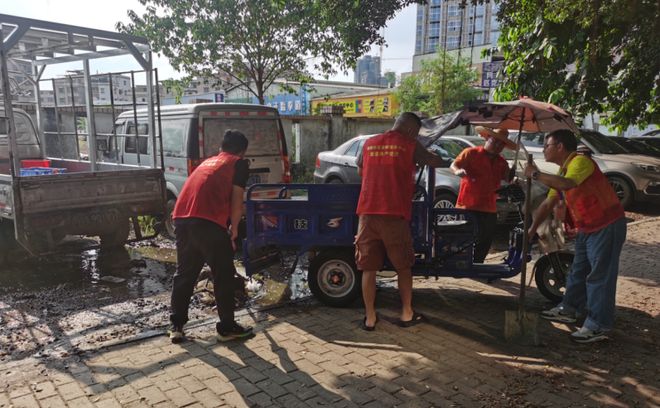 面对紧急防控任务,驻村组全员主动担当,放弃周末休息时间投入工作,以“舍小家、为大家”的坚守,通过“比进度、比质量”激发干劲,让枯燥的劳动充满凝聚力。环境整治现场,驻村组既统筹动员志愿者、居民等群体清理杂草、修剪绿植,又与社区工作人员并肩作战,全员上阵拿起工具参与垃圾捡拾、杂物清理。从社区角落到居民楼屋顶,处处可见大家顶着烈日忙碌的身影,汗水浸湿了衣服也未有过丝毫的懈怠,为防蚊灭蚊、阻断“两热”传播源头奠定基础。在日常巡查中,驻村组工作人员仔细排查积水区域与蚊虫滋生隐患,发现问题现场办公督促整改,还走进社区商铺宣传防控知识,压实商户“门前三包”责任,指导做好卫生清洁,共建良好社区环境。